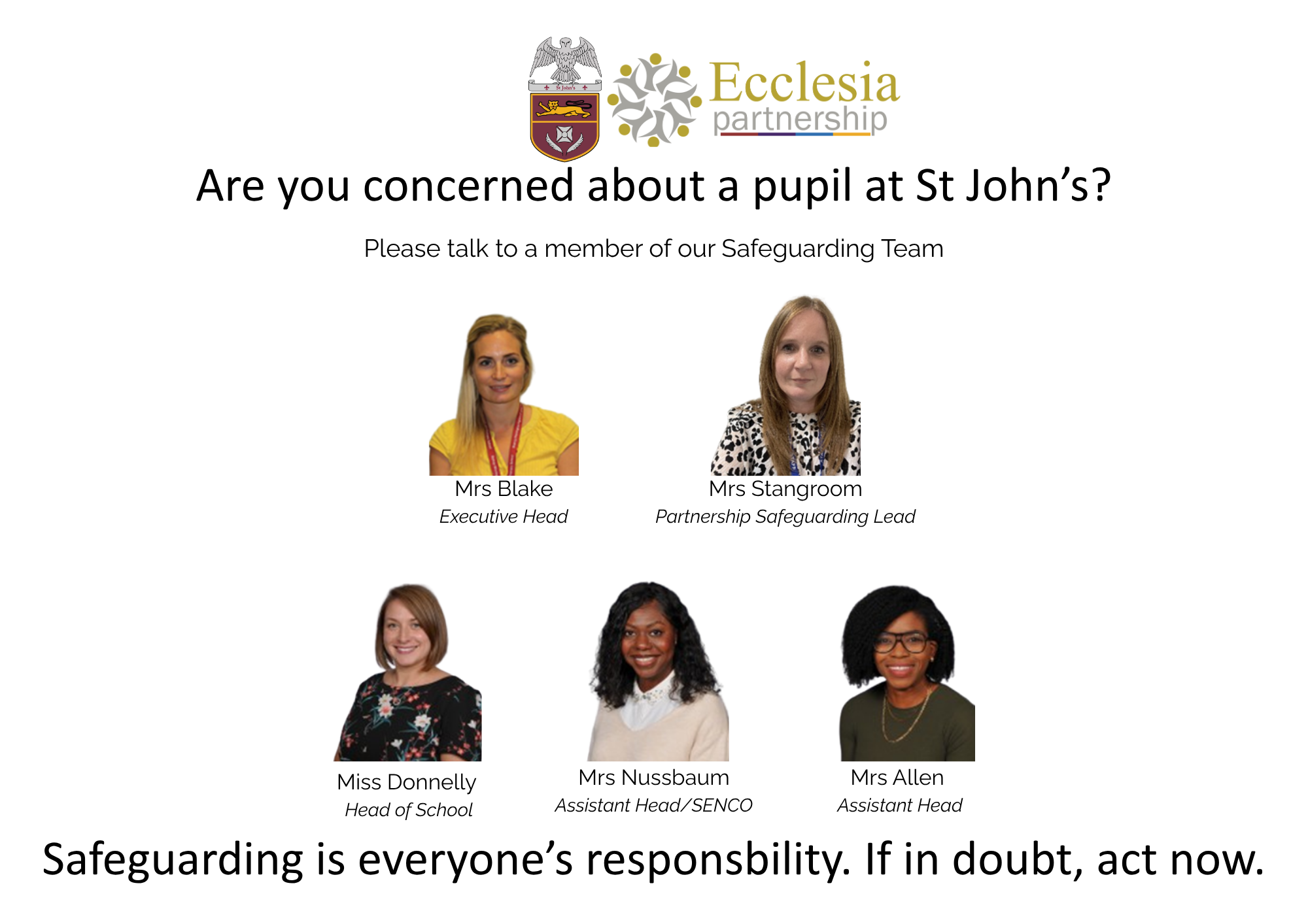 If you have concerns about the safety of any child in our school, we encourage you to discuss your concerns with one of the adults above.